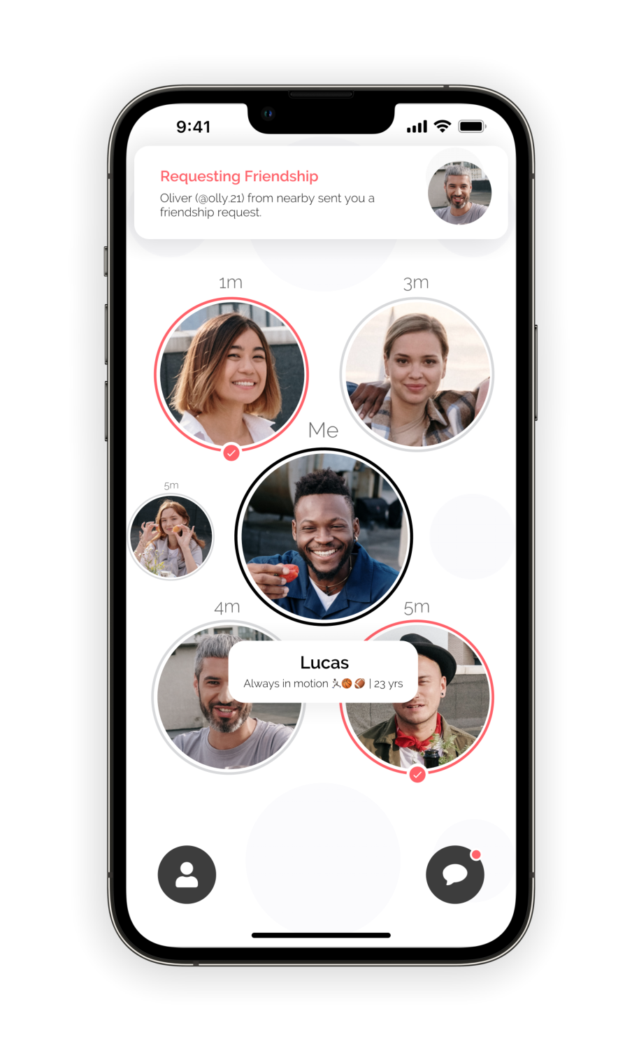 Just enable Bluetooth, and your smartphone will discover other devices within a radius of about 20 meters. No GPS location needed.